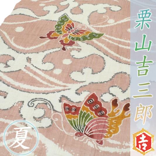 夏物 栗山吉三郎 名古屋帯 栗山紅型 紅型染 渋 梅色 蝶 蝶々 大波 本大麻 九寸 未仕立て G254 Rainbowbookclub Org